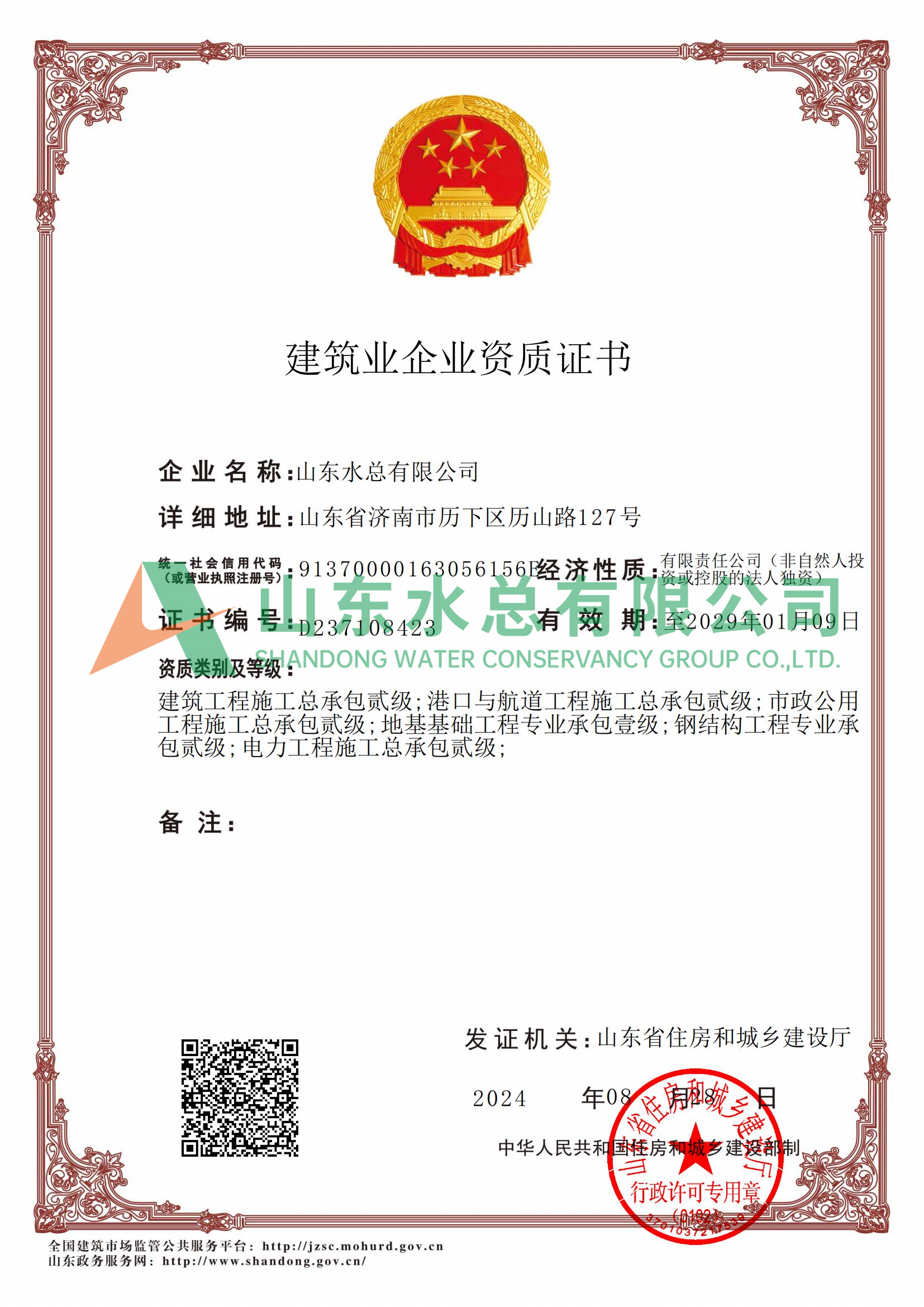 建筑业企业资质证书