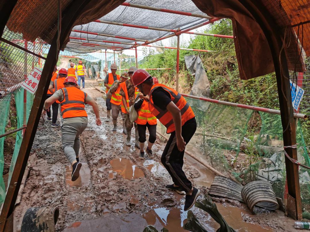 本次演练模拟大蒙子桠隧洞因雨水倒灌,导致掘进机组受损,现场工人重伤1人、轻伤2人的一般事故,从观察水情,到构筑防水坎、启动应急排水泵排水,模拟了防汛遇险应急处置的各项工作,各演练小组各司其责、分工协作、秩序井然,圆满完成了演练任务。