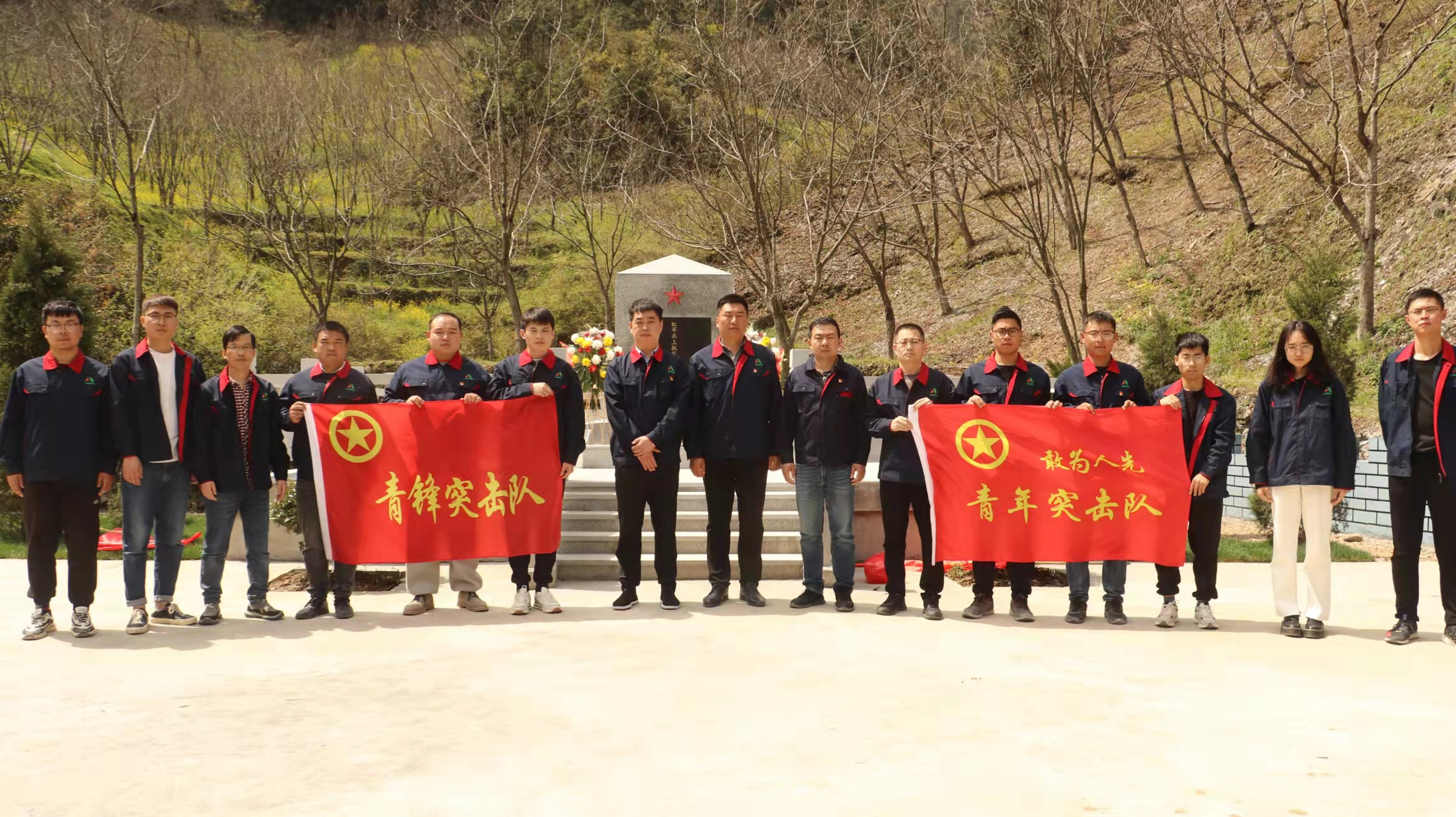 3月30日,突击队成员来到项目驻地清凉峰镇梓鹏坞的红军北上抗日先遣队无名烈士墓。面对着革命英雄的墓碑,队员们心情激动,思绪万千。通过瞻仰烈士墓碑、敬献鲜花、鞠躬默哀等方式,祭奠长眠于此的革命先烈。