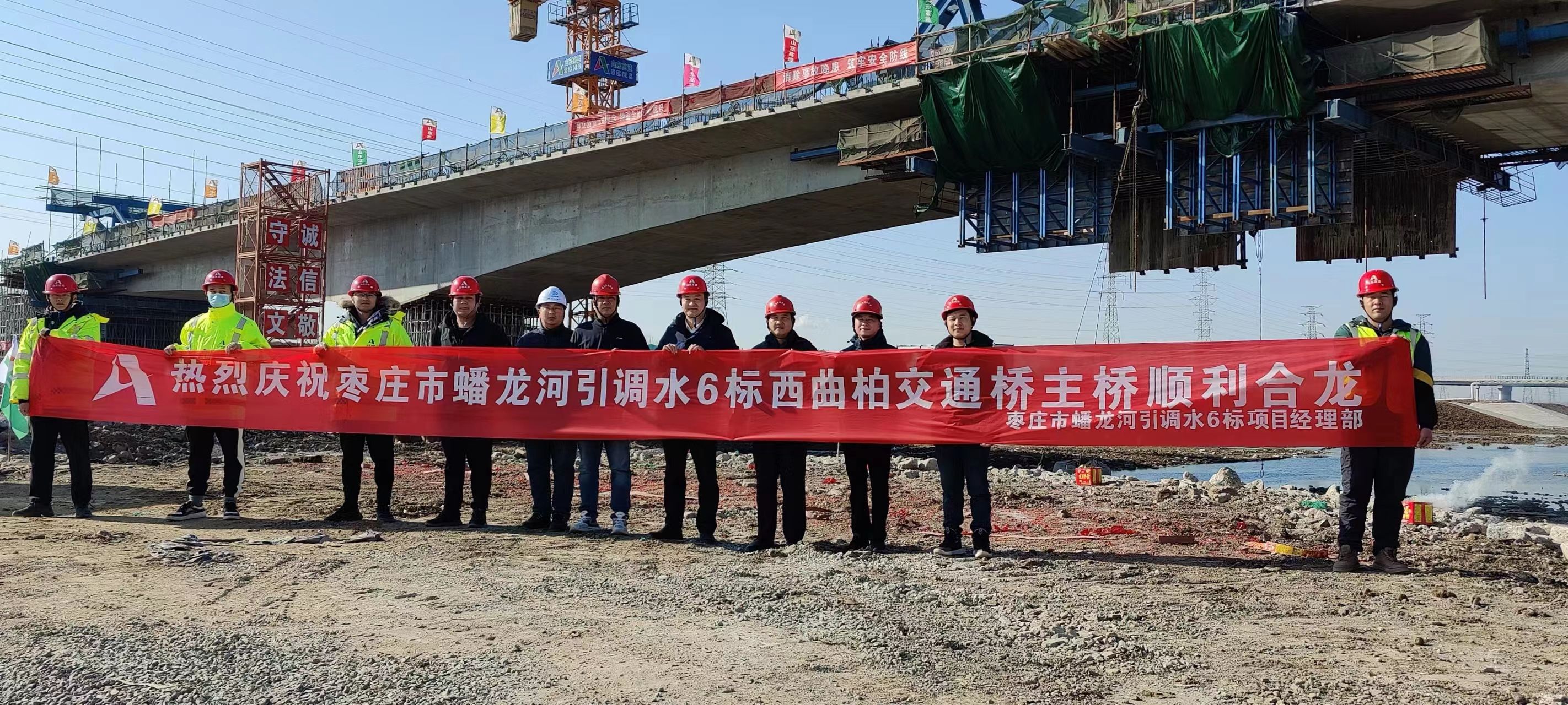 西曲柏交通桥主桥合龙,标志着项目建设取得了阶段性胜利,为大桥全面通车提供了充分的先决条件。枣庄蟠龙河项目部将继续发扬“勇于担当,敢为人先”的企业精神,坚持精细化管理不松懈,合力攻坚,戮力拼搏,为实现西曲柏交通桥全面通车目标继续努力!