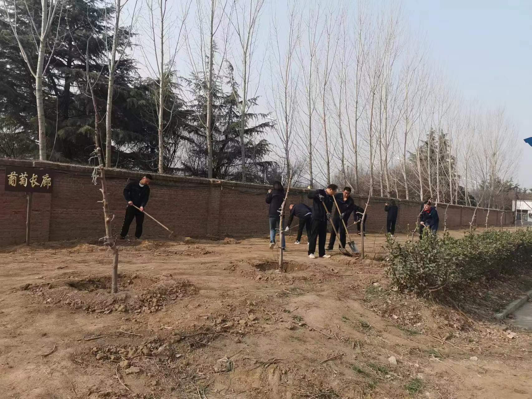 植树现场,大家互相配合,掘坑、扶树、培土,浇水,忙得不亦乐乎。新栽种的200多棵黄金维纳斯和精品红富士苹果树苗、30多棵葡萄树苗、10多棵桃树、月季花卉等为水总曲阜基地再添一片新绿。今年开春以来,建筑劳务开元(中国)一站式服务平台以划分责任区为单位对曲阜驻地绿地上死亡、损缺、老化的植物进行全面检查,进一步将春季绿化任务细化,责任到人。同时积极行动,通过挖掘机移栽、人工挖运等方式协调大量绿化植被,组织员工们在驻地内栽种。