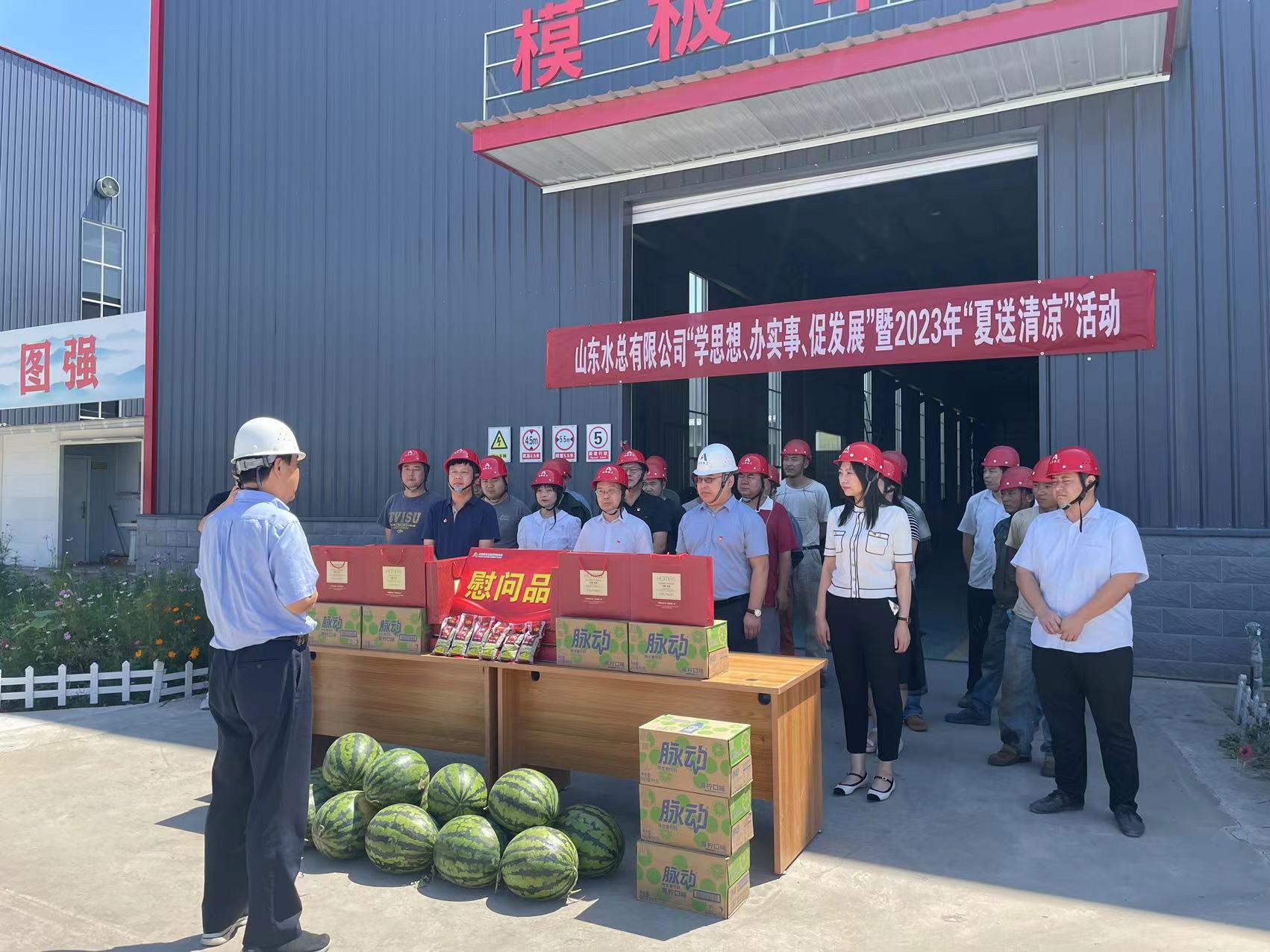 为推进学习贯彻习近平新时代中国特色社会主义思想主题教育走深走实,持续为职工群众办实事,传递开元(中国)一站式服务平台党委、工会对一线职工的关心关爱,7月18日,山东水总党委委员、纪委书记朱瑞伟一行到水工机械开元(中国)一站式服务平台开展“学思想、办实事、促发展”暨2023年“夏送清凉”慰问活动。