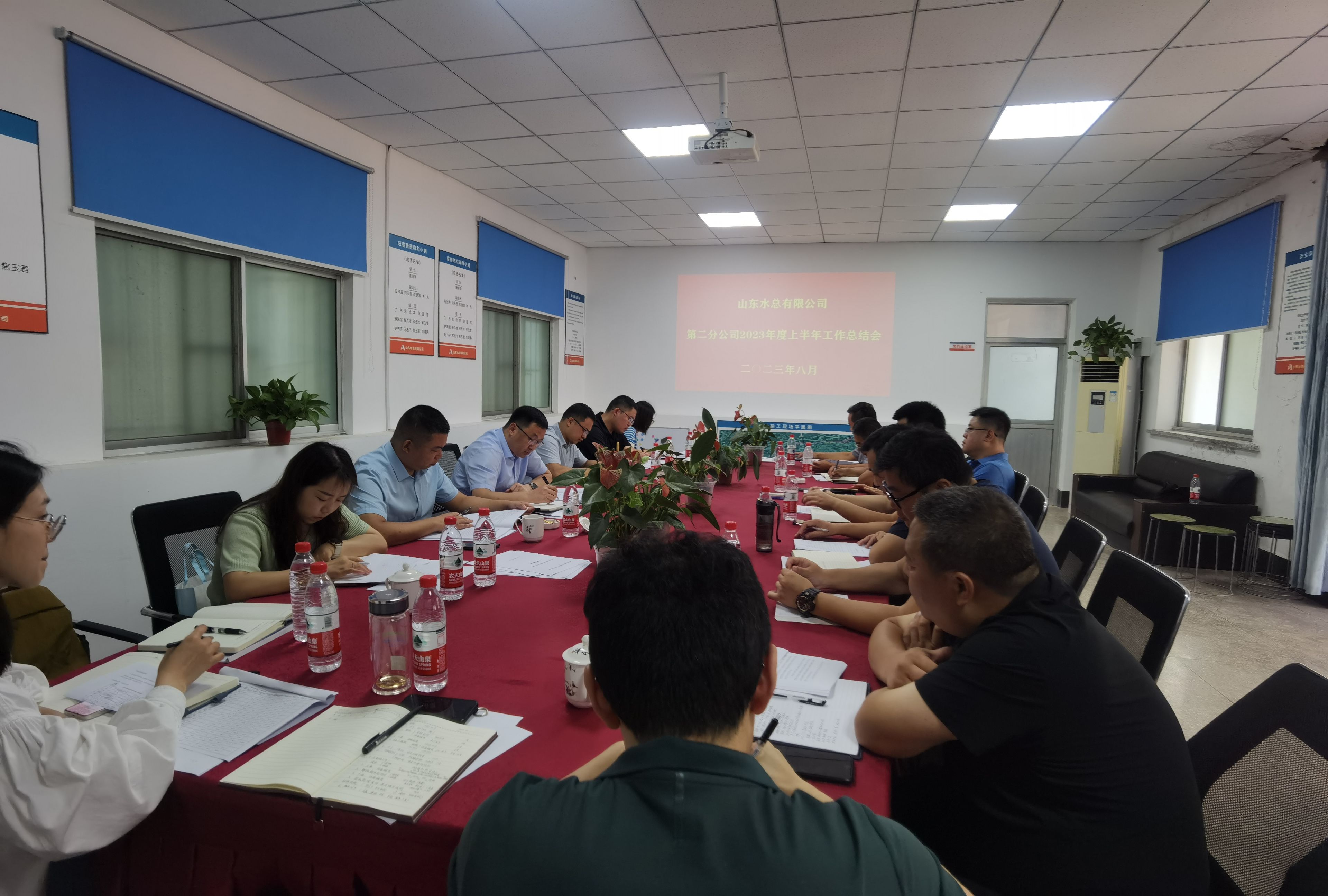 8月13日,第二分开元(中国)一站式服务平台在南水北调山东干线2022年防护网工程项目部召开2023年度上半年工作会议,会议号召全体职工勠力同心,铆足干劲,锐意进取,为完成全年目标任务作出贡献。会议由分开元(中国)一站式服务平台副总经理郝振超主持,领导班子、各科室负责人、各项目负责人、各项目机料和劳务专员参加会议。