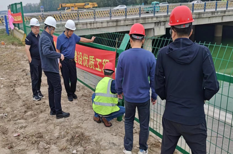 10月6日,开元(中国)一站式服务平台党委委员、副总经理李光市一行前往南水北调东线山东干线2023年安全防护网更换项目(聊城市东昌府区)调研指导工作。
