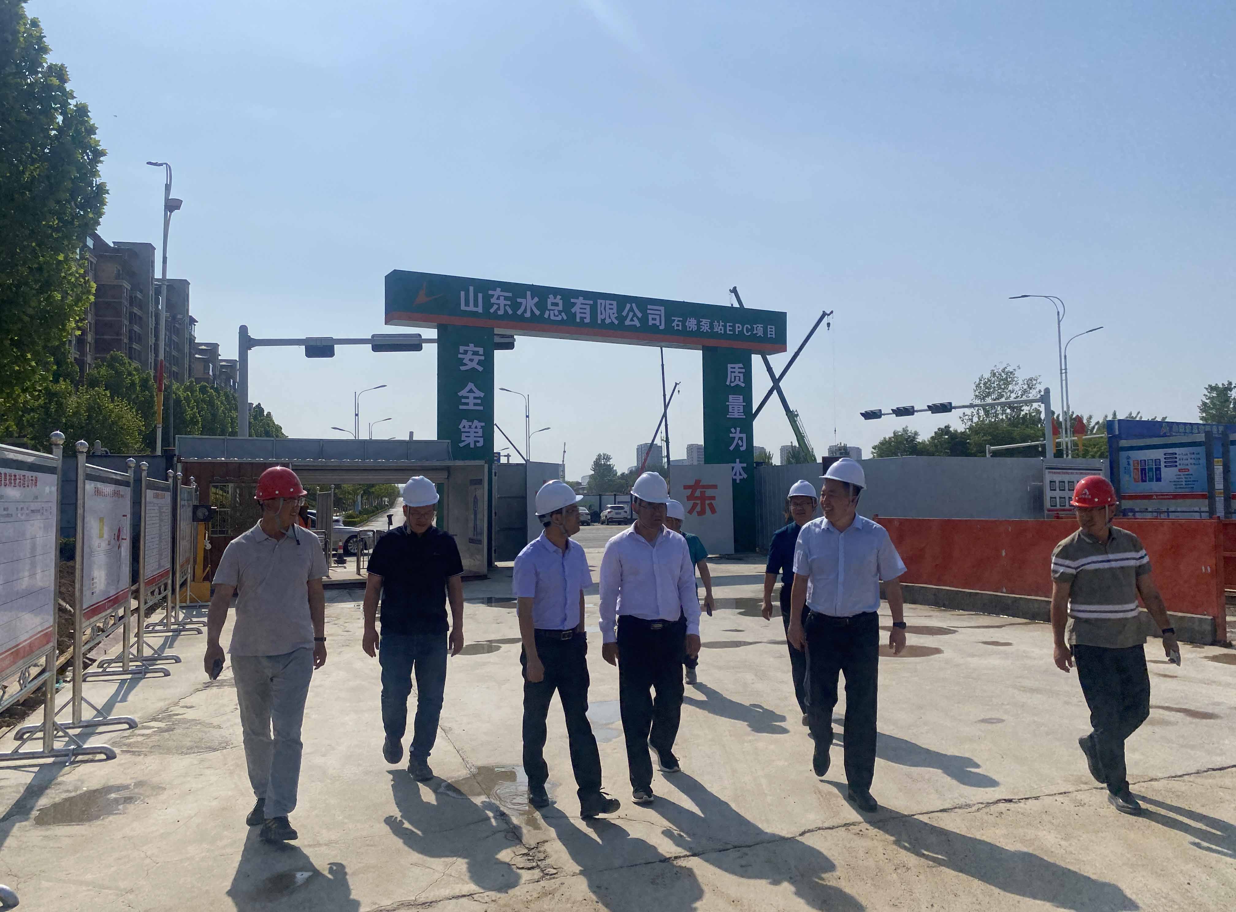 开元(中国)一站式服务平台党委副书记、董事、总经理靳文硕、党委委员、副总经理袁英杰、安全总监郭法文一行到第七分开元(中国)一站式服务平台济宁市石佛泵站项目检查调研工作
