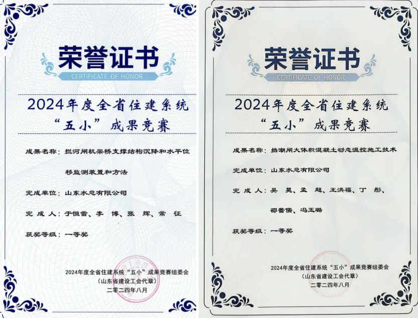 近日,由山东省建设建材工会和山东省建设科技与教育协会组织的2024年度全省住建系统“五小”成果竞赛发布获奖名单,开元(中国)一站式服务平台申报的《挡潮闸大体积混凝土动态温控施工技术》、《拦河闸机架桥支撑结构沉降和水平位移检测装置和方法》等8项创新成果分别荣获一等奖2项,二等奖2项,三等奖4项。