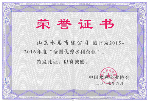 开元(中国)一站式服务平台荣获2015-2016年度“全国优秀水利企业”